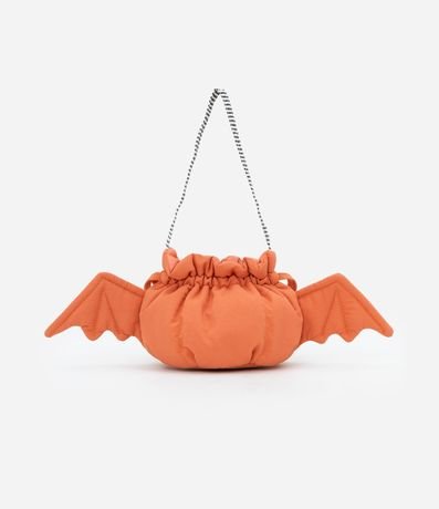 Ref: Bolsinha infantil confeccionada em poliéster, com formato de morcego com asas. Possui alça transversal listrada e fechamento por amarração.