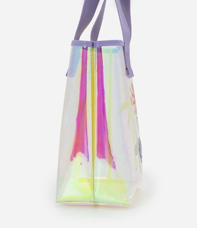 Ref: Bolsa infantil confeccionada em PVC, com alças, ícones de verão e holográfica.