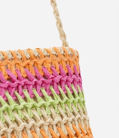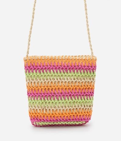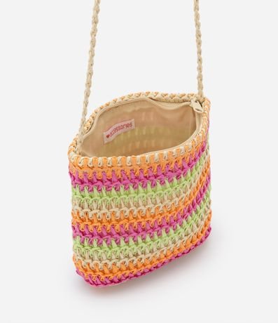 Ref: Bolsa infantil transversal em palha, trançada com listras coloridas.