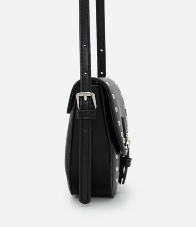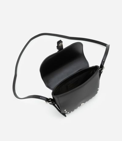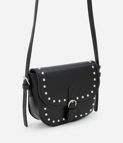 Ref: Bolsa infantil confeccionada em PU com estrutura firme e acabamento macio. O modelo traz formato estruturado com aba frontal, aplicação de tachinhas metálicas ao redor do recorte e fechamento por fivela decorativa com botão interno. Possui alça regulável e compartimento interno com forro têxtil.