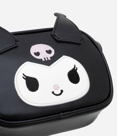 Ref: Bolsa transversal infantil confeccionada em material sintético com fechamento por zíper, alças regulável e estampa da Kuromi com orelhinhas.
