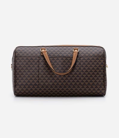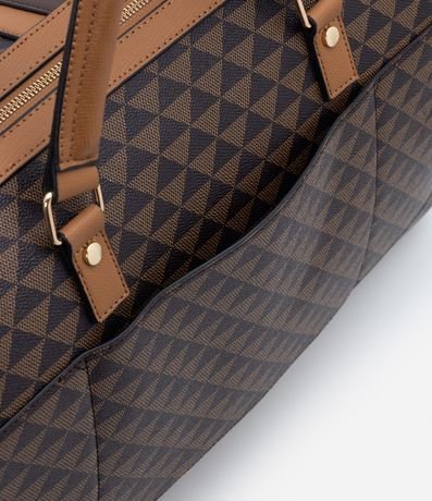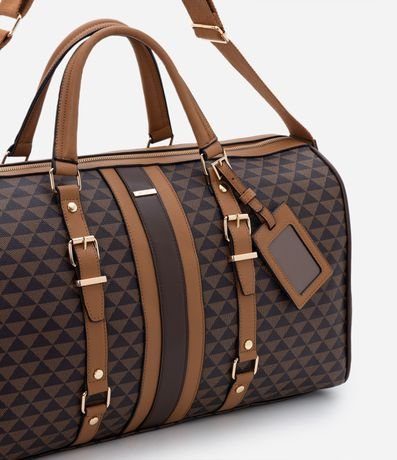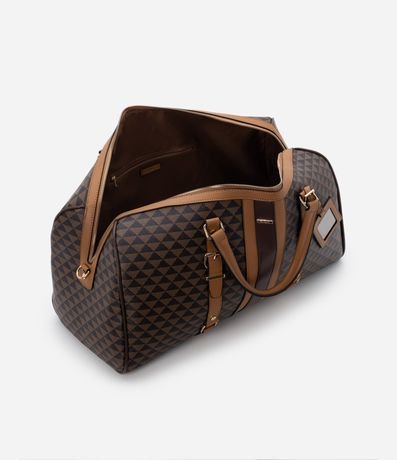 Ref: Bolsa grande modelo mala, com alças de mão, alça gorgurão removível, detalhes com fivelas, fechamento no topo por zíper, bolsinho, estampa de triângulos e plaquinha de identificação na alça.