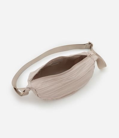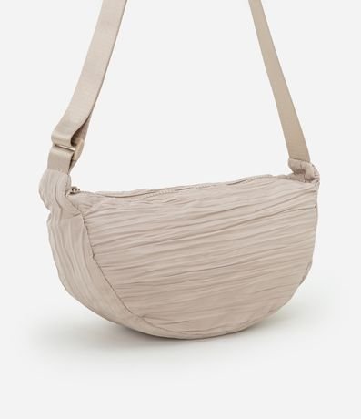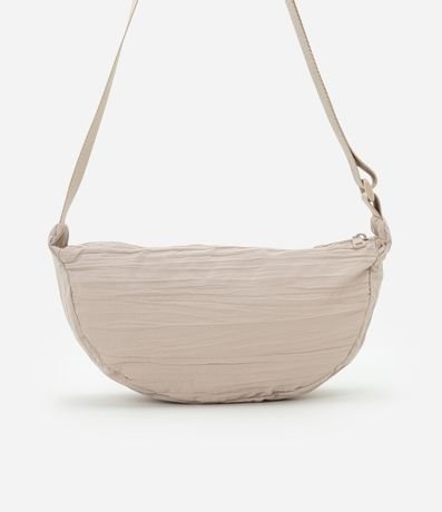 Ref: Bolsa feminina média de modelo meia lua, com textura drapeada, com alça transversal regulável e fechamento de zíper.