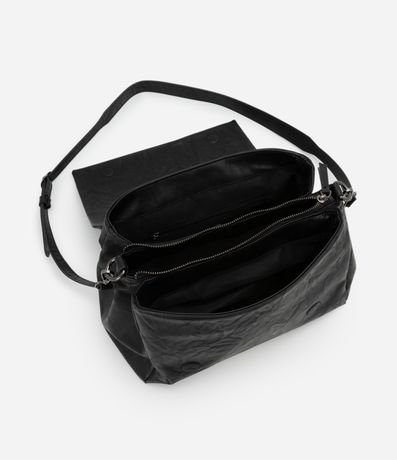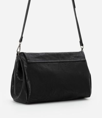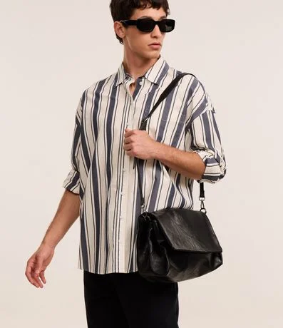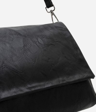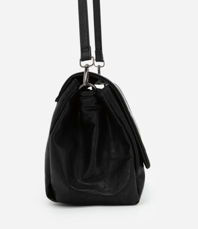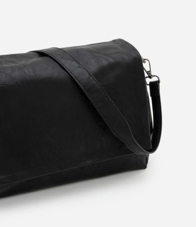 Bolsa masculina desestruturada, confeccionada em poliuretano, com alça removível e fechamento por tampa.