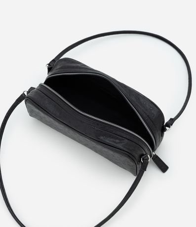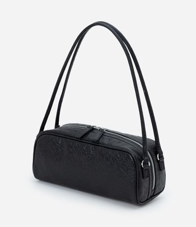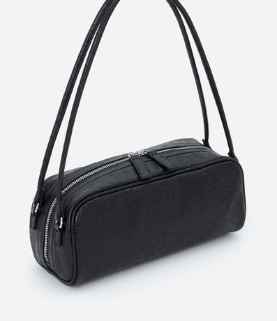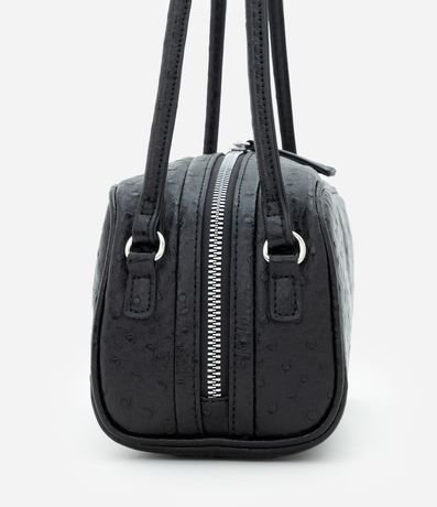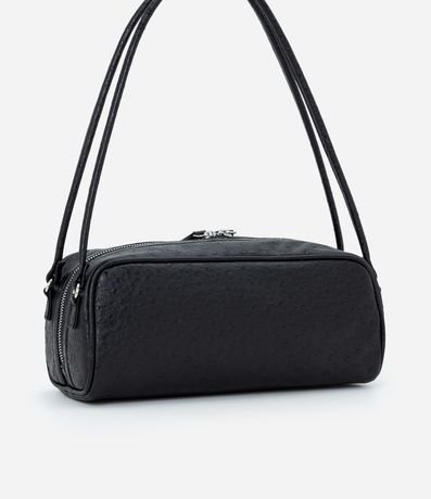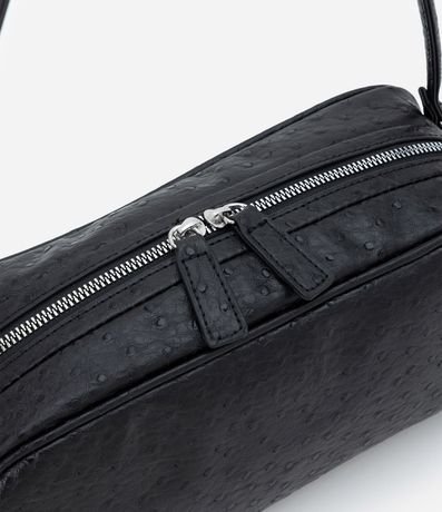 Bolsa média feminina confeccionada em poliéster certificado. Possui modelo retangular em PU texturizado estilo avestruz, com acabamentos metálicos em níquel, duas alças fixas, abertura superior com zíper duplo e estrutura rígida. O interior é simples, ideal para uso diário com boa organização.