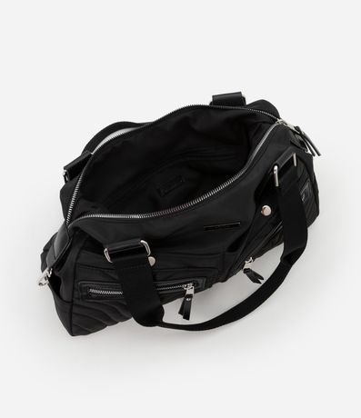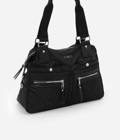 Ref: Bolsa satchel feminina, modelo média e confeccionada em PU. Possui bolsinhos com zíper e textura em matelassê.