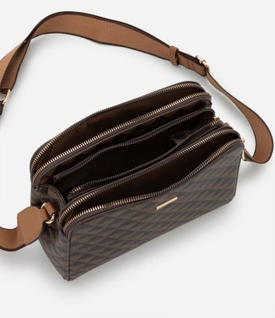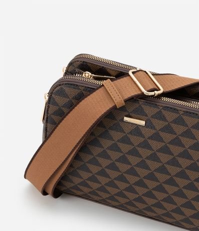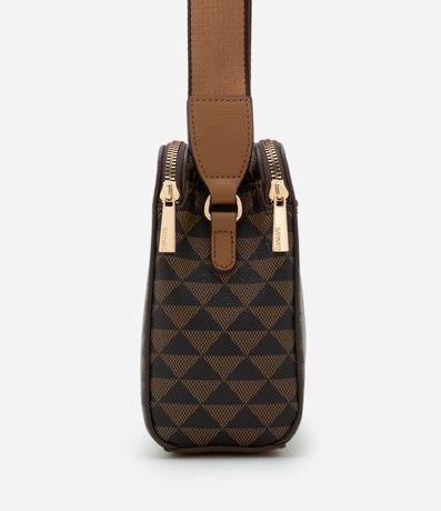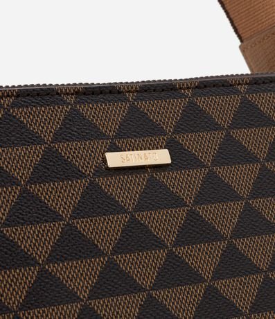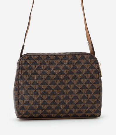 Ref: Bolsa média feminina, confeccionada em PU, com alça transversal, fechamentos em zíper e estampa triângulos.