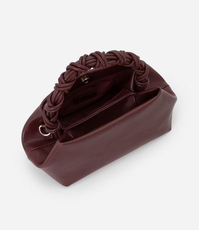 Ref: Bolsa feminina pequena com alças duplas, alça de mão trançada e alça longa. A estampa do acessório é lisa, deixando seus detalhamentos da alça com destaque maior.