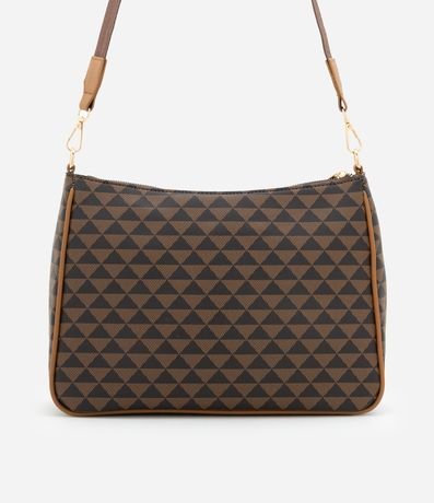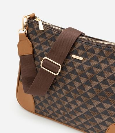 Ref: Bolsa feminina Postman média com fechamento por fivela, alça longa ajustável com gorgurão e estampa triangular.