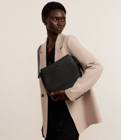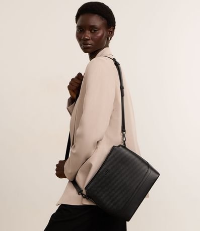 Bolsa Postman Média com Textura Embossed e Detalhe de Listras