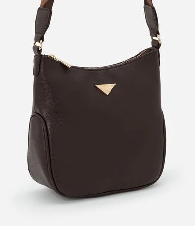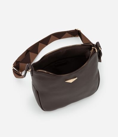 Ref: Bolsa feminina confeccionada em material sintético, peça no modelo postman pequena com alça de gorgorão estampada com triângulos contrastantes.