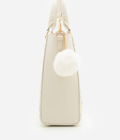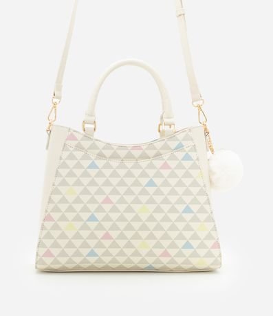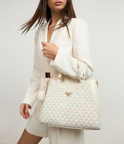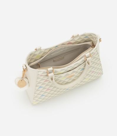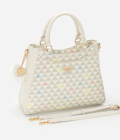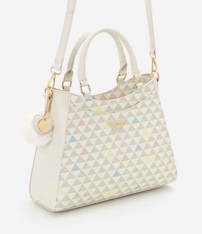 Ref: Bolsa satchel, confeccionada em PU, com alça de mão, alça de ombro, fechamento por zíper, bolsos externo com fechamento por pressão e estampa triângulo. Peça com chaveiro de coração de PU e medalhinha metalizada da marca.