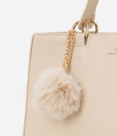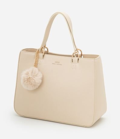 Ref: Bolsa feminina no modelo satchel média com fechamento de zíper, alça de mão, alça longa removível e detalhe de chaveiro pompom.