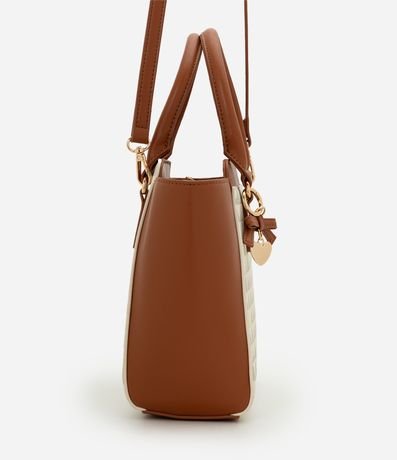 Ref: Bolsa feminina satchel média em PU confeccionada com poliéster mais sustentável. Possui estampa geométrica de triângulos, laterais lisas contrastantes, alças de mão, alça longa removível, fechamento em zíper e compartimentos internos organizados.