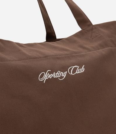 Ref: Bolsa shopper esportiva, no tamanho grande confeccionada em sarja de algodão certificado bci com alças de mão e estampa bordada lettering localizada.