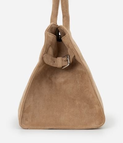 Ref: Bolsa grande modelo shopper, confeccionada em material sintético e sem estampa. A bolsa tem alças duplas, detalhe de fivelas laterais, bolso interno e fechamento por botão.