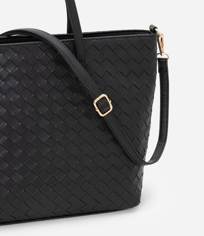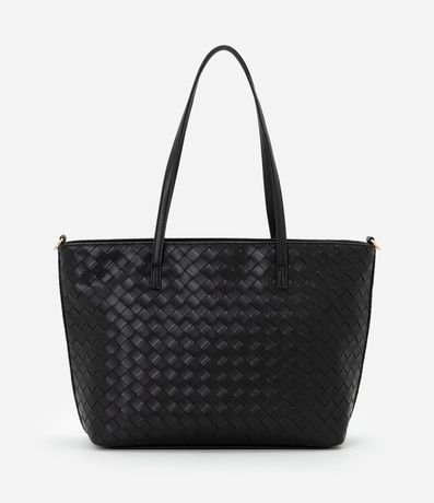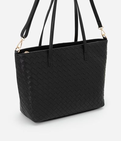 Ref: Bolsa feminina confeccionada em material sintético modelo shopper grande com fechamento por zíper, alça longa e efeito tressê.