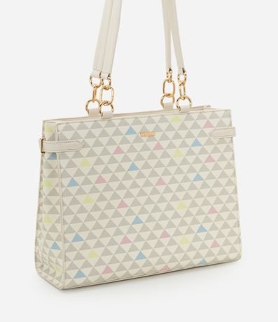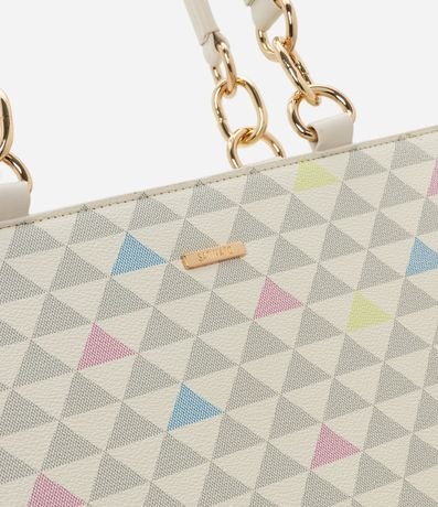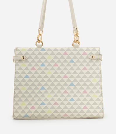 Bolsa feminina no modelo shopper grande com fechamento por zíper, alça média e estampa triangular com detalhes laterais.