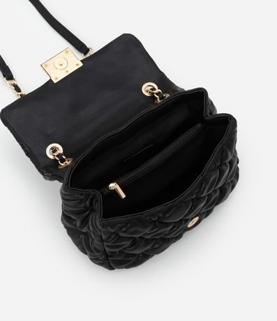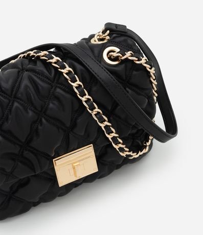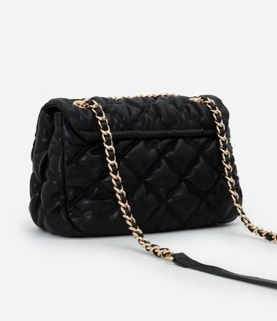 Bolsa shoulder confeccionada em PU, com tampa matelassê e corrente dourada que adiciona sofisticação ao design. Possui fecho metálico frontal e alça ajustável para uso como crossbody.