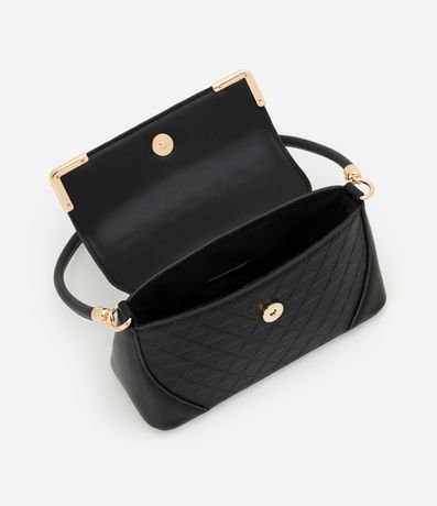 Ref: Bolsa feminina confeccionada em poliéster certificado Grs. Possui modelo shoulder, tamanho médio, alça estruturada, fechamento por botão de pressão e detalhes metalizados.