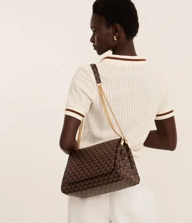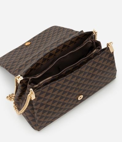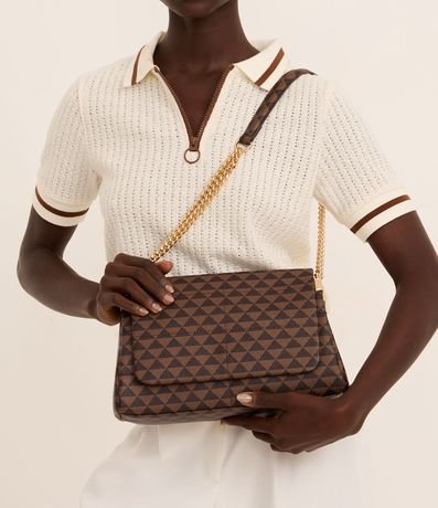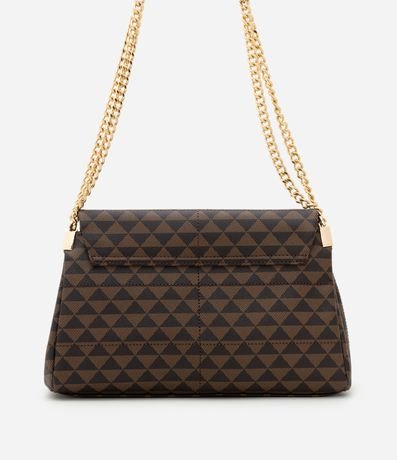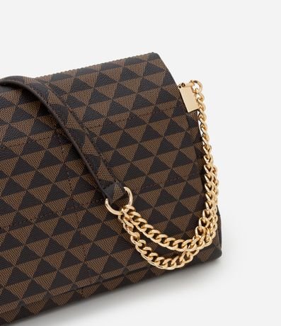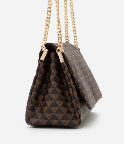 Bolsa Shoulder Média em PU Estampa Triângulos e Alça com Corrente