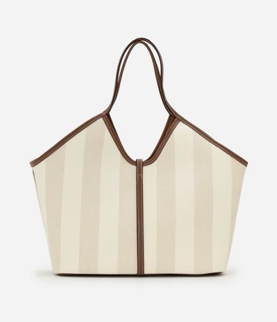 Ref: Bolsa tote grande com listras e alças duplas. Espaçosa, estilosa e sustentável. Ideal para praia ou dia a dia com praticidade e charme.