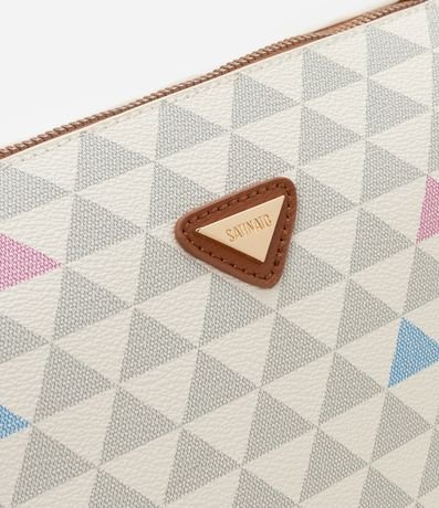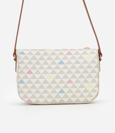 Ref: Bolsa transversal feminina, confeccionada em PU, com fechamento em zíper e estampa triângulos.