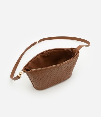 Ref: Bolsa transversal confeccionada em material sintético com alça de ombro, fechamento por zíper e textura tressê.