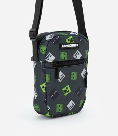 Ref: Bolsinha infantil confeccionada em poliéster, com alça transversal regulável e 02 bolsos. Possui fechamento por zíper estampa do Minecraft.