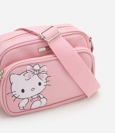 Ref: Bolsa infantil confeccionada em material sintético, de modelo transversal, com alça regulável, com estampa da Hello Kitty. Possui dois bolsos com fechamento por zíper.