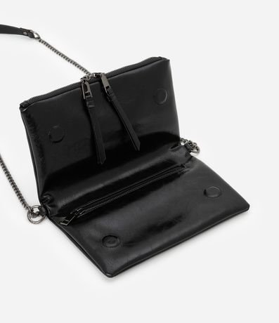 Ref: Bolsa feminina transversal média com fechamento por imã, divisórias com zíper e alças de corrente.