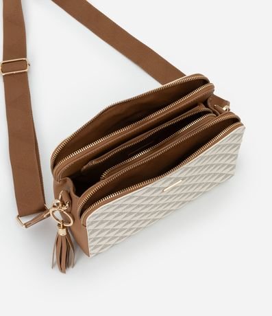 Bolsa Transversal Média com Alça Longa e Estampa Triângulos