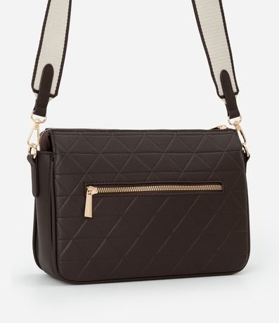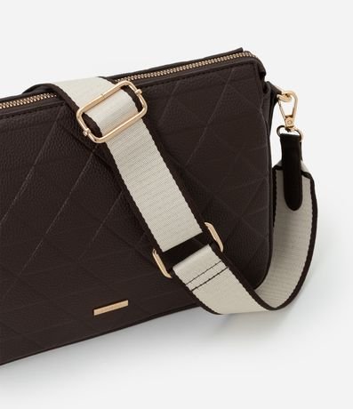 Ref: Bolsa feminina média no modelo transversal com fechamento em zíper e bolso externo. Possui estampa geométrica e pequena tag no acessório.