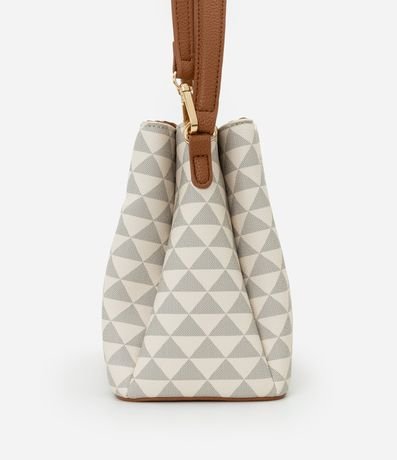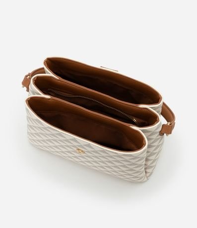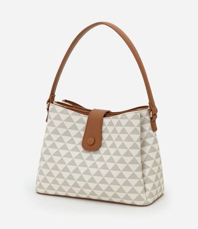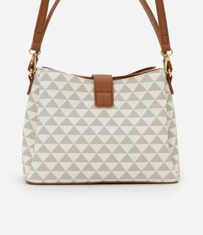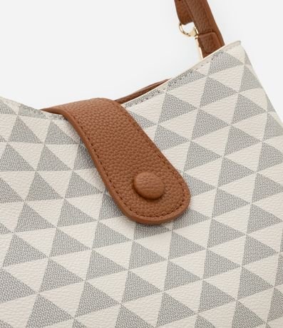 Ref: Bolsa feminina transversal, bolsa contém divisórias e fechamento por lapela com botão. Peça confeccionada em material sintético contém alça de mão, alça longa removível e estampa de triângulos.