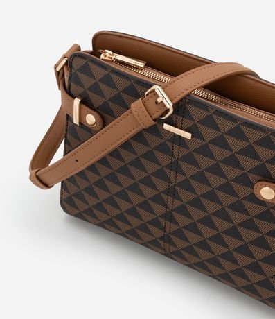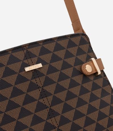 Ref: Bolsa transversal feminina confeccionada em PU. Possui estampa geométrica em triângulos por toda a superfície, fechamento em zíper e alça longa ajustável.