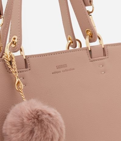 Bolsa feminina média estilo satchel em PU confeccionada com poliéster mais sustentável. Possui alças de mão e alça longa removível, fechamento em zíper, interior espaçoso e pingente pompom removível.