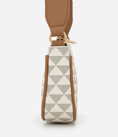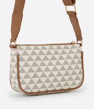 Ref: Bolsa feminina confeccionado em poliéster mais sustentável. Possui alça transversal, estampa de triângulos com acabamento na lateral e fechamento por zíper.