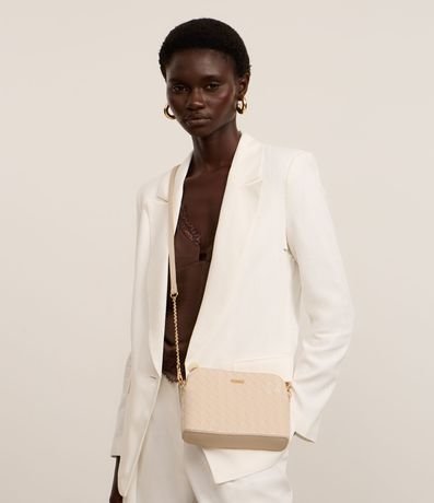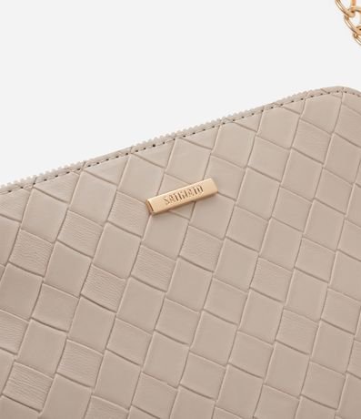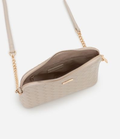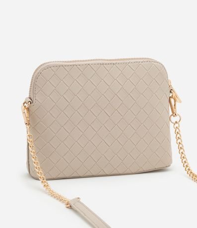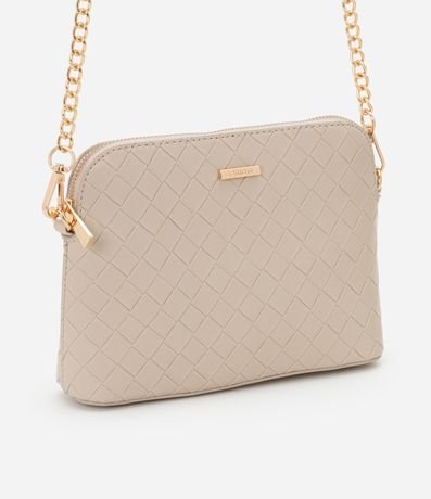 Ref: Bolsa feminina no modelo transversal pequena, com efeito tressê, fechamento por zíper contrastante e alça de corrente longa,
