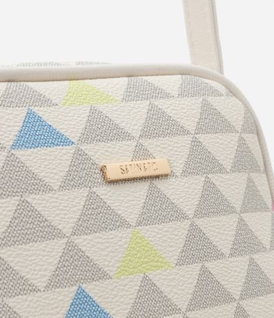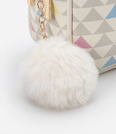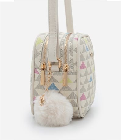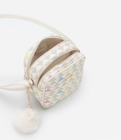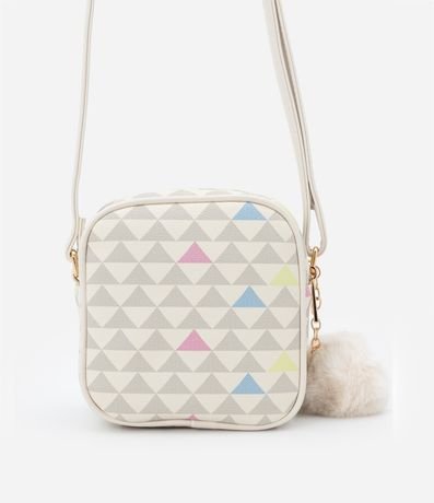 Ref: Bolsa transversal pequena, modelo quadrado, com abertura dupla por zíper e alça ajustável. Possui pingente de pompom e estampa de triângulos. Este produto possui poliéster reciclado em sua composição, sendo ambientalmente mais responsável.