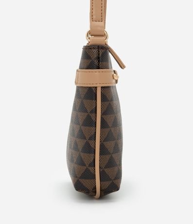 Ref: Bolsa feminina transversal pequena com fechamento por zíper, alça longa contrastante e estampa triangular.