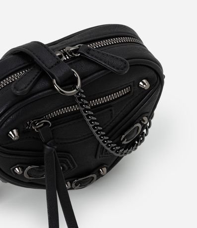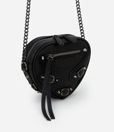 Ref: Bolsa feminina transversal pequena confeccionada em PU com formato de coração, trazendo estilo marcante e moderno. Possui detalhes em fivelas, aplicações metálicas e corrente na alça, todos com acabamento. Fechamento por zíper e bolso frontal funcional.