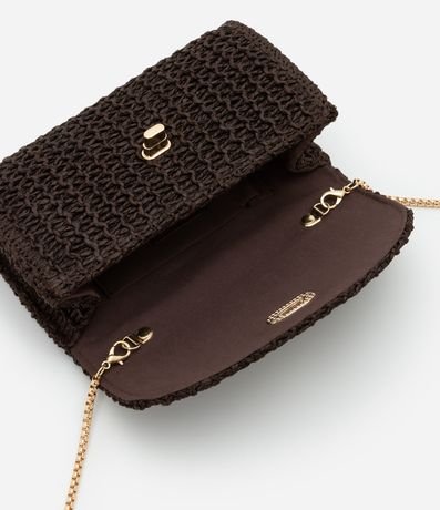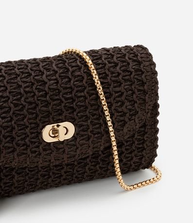 Ref: Bolsa pequena, transversal com alça de corrente, confeccionada em ráfia com textura em efeito palha e com fechamento por locker de metal.