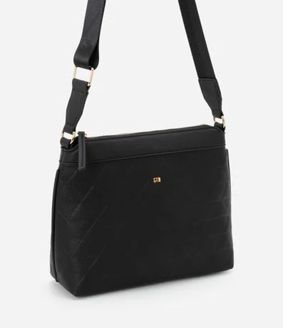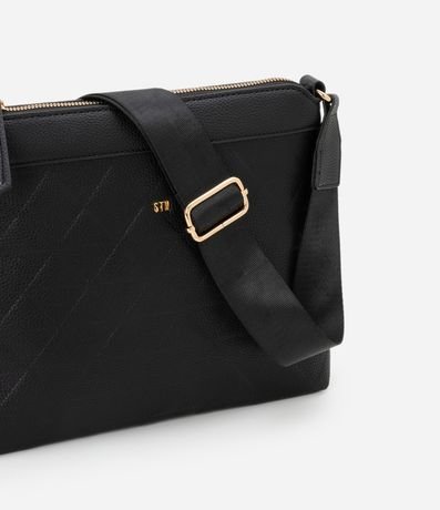 Ref: Bolsa feminina confeccionada em material sintético com efeito embossed, peça no modelo transversal postman com fechamento por zíper, bolso externo e alça longa de gorgorão.