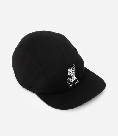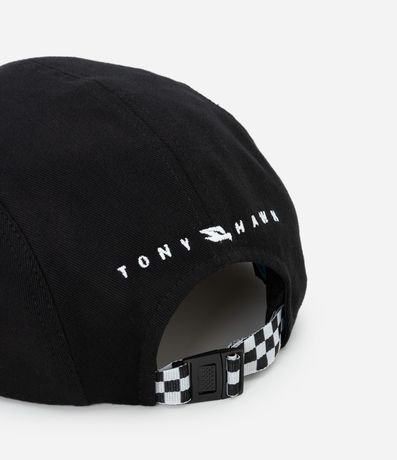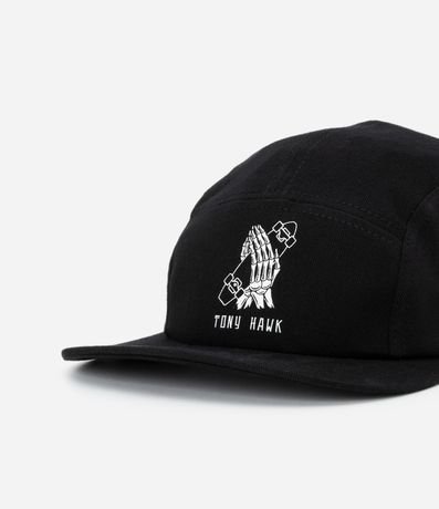 Ref: Boné 5 panel em sarja com bordado divertido Tony Hawk na parte frontal. O modelo possui aba curvada, estrutura leve e ajuste traseiro com fita estampada para melhor conforto. Perfeito para compor produções casuais com estilo, confeccionado em algodão de certificado BCI.