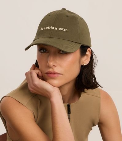 Ref: Boné confeccionado em sarja de algodão BCI. O acessório tem aba curva, ajuste traseiro e bordado "brazilian core".