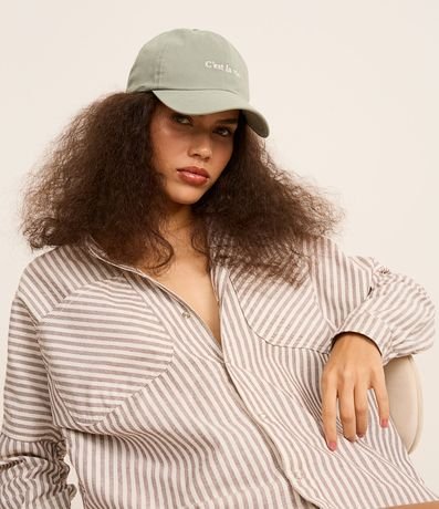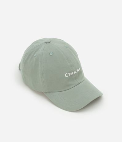 Ref: Boné feminino confeccionado em sarja, com aba curva e bordado frontal com lettering "c'est la vie".