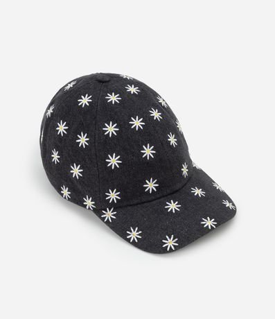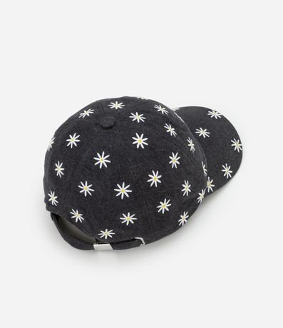 Ref: Boné confeccionado em algodão BCI. O acessório tem aba curva, ajuste na parte traseira e bordados de margaridinhas.