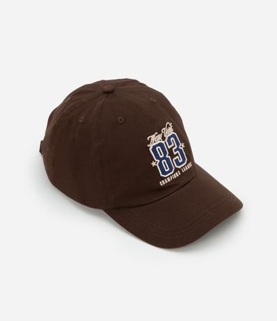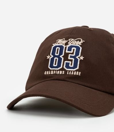 Ref: Boné de sarja confeccionada a partir de algodão BCI. O acessório tem aba curva, ajuste traseiro e bordado frontal New York 83.