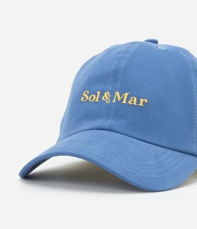 Boné confeccionado em sarja de algodão BCI. O acessório tem aba curva, ajuste traseiro e bordado "Sol&Mar".