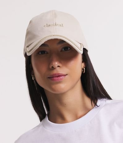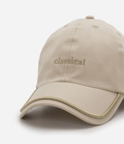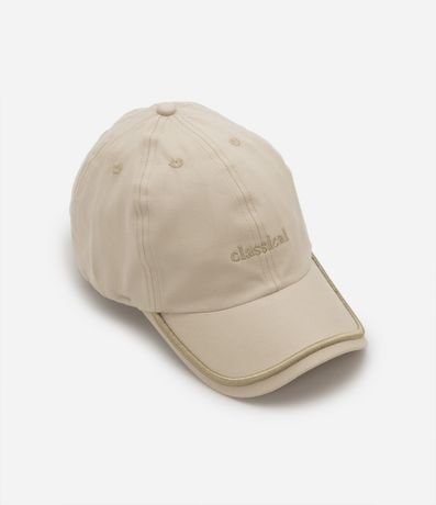 Ref: Boné de sarja com aba curva e fechamento por fivela. Possui o lettering "Classical" e viés contrastante na aba.